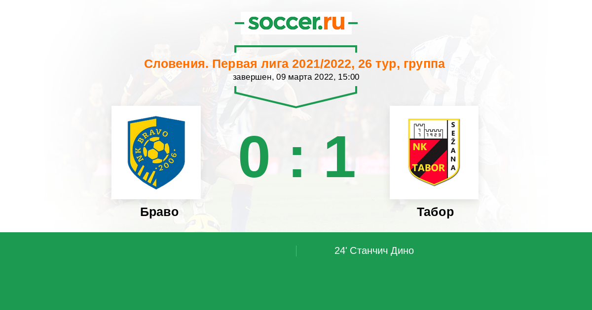 Протокол матча Браво против Табор