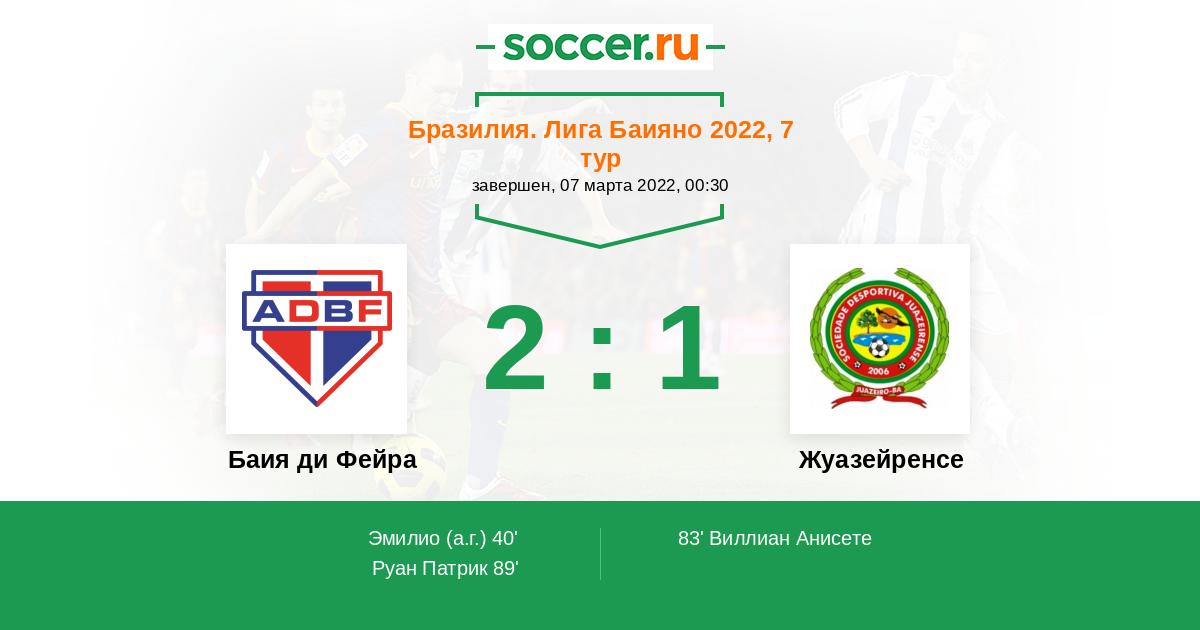 Протокол матча Баия ди Фейра против Жуазейренсе