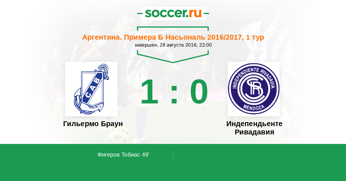 Протокол матча Гильермо Браун против Индепендьенте Ривадавия