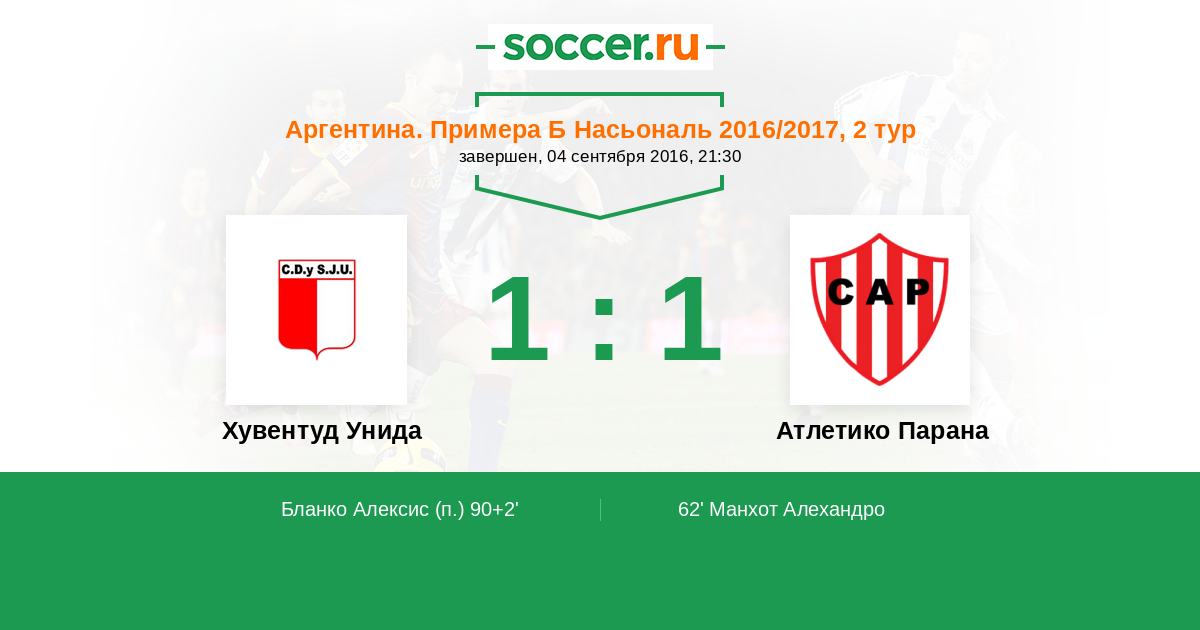 Протокол матча Хувентуд Унида против Атлетико Парана
