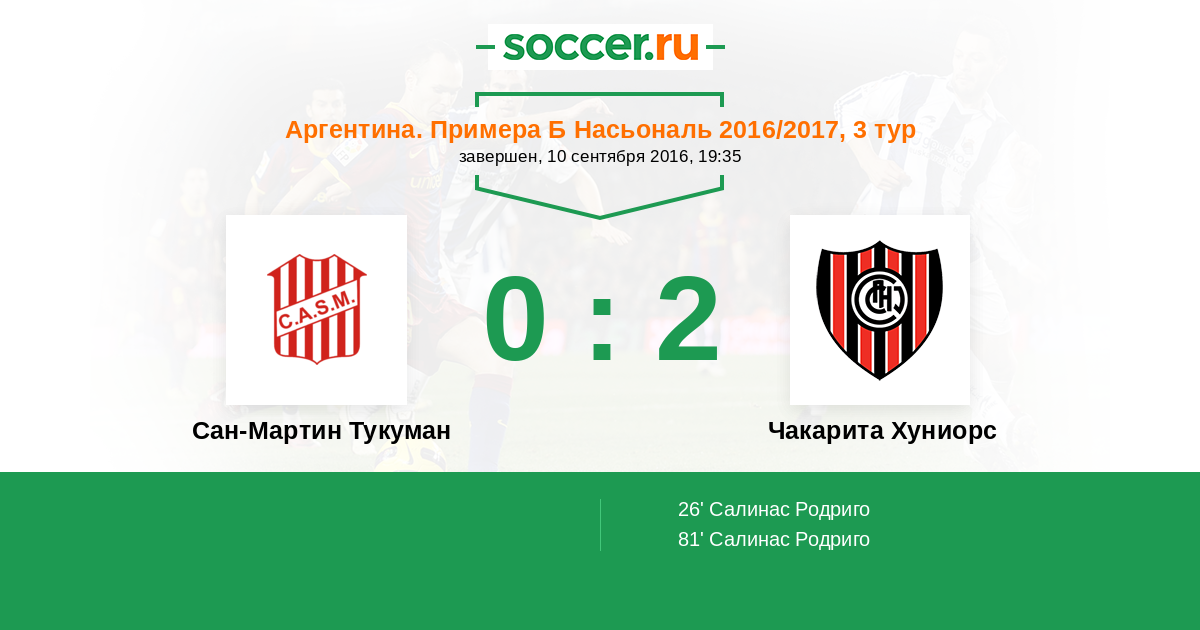 Протокол матча Сан-Мартин Тукуман против Чакарита Хуниорс