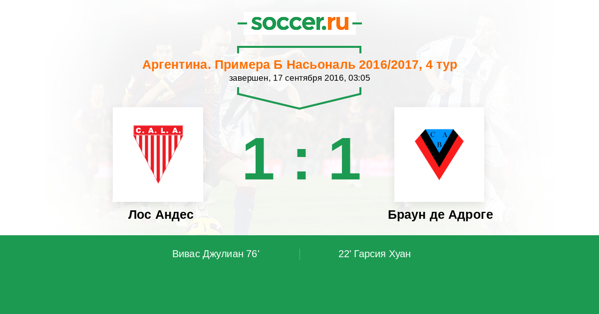 Протокол матча Лос Андес против Браун де Адроге