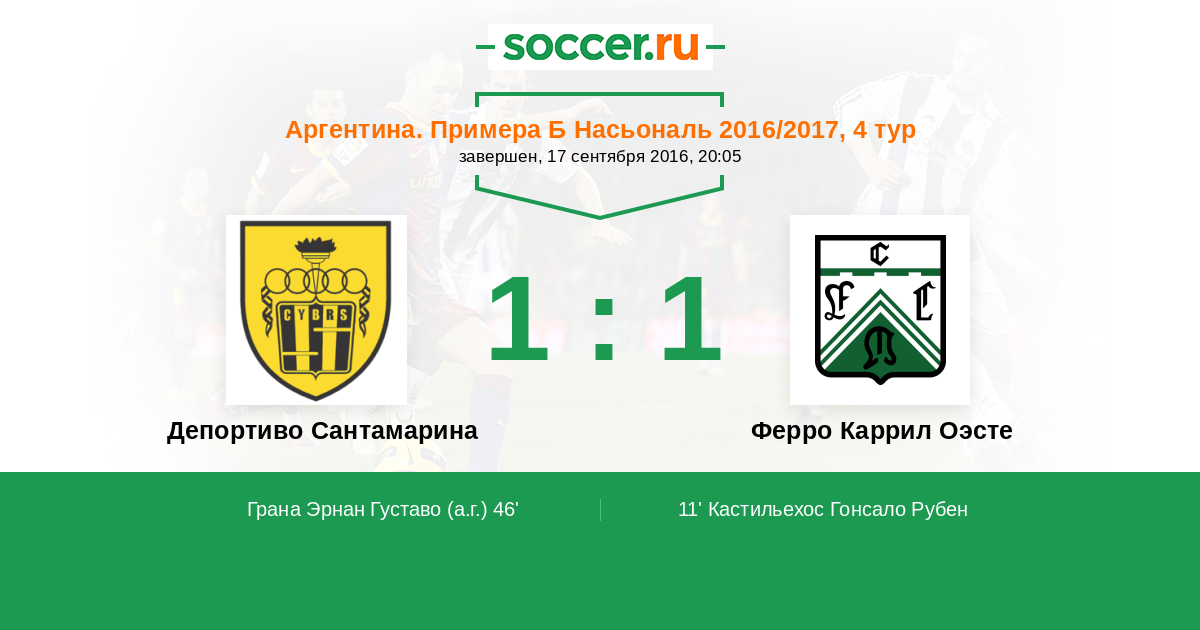 Протокол матча Депортиво Сантамарина против Ферро Каррил Оэсте