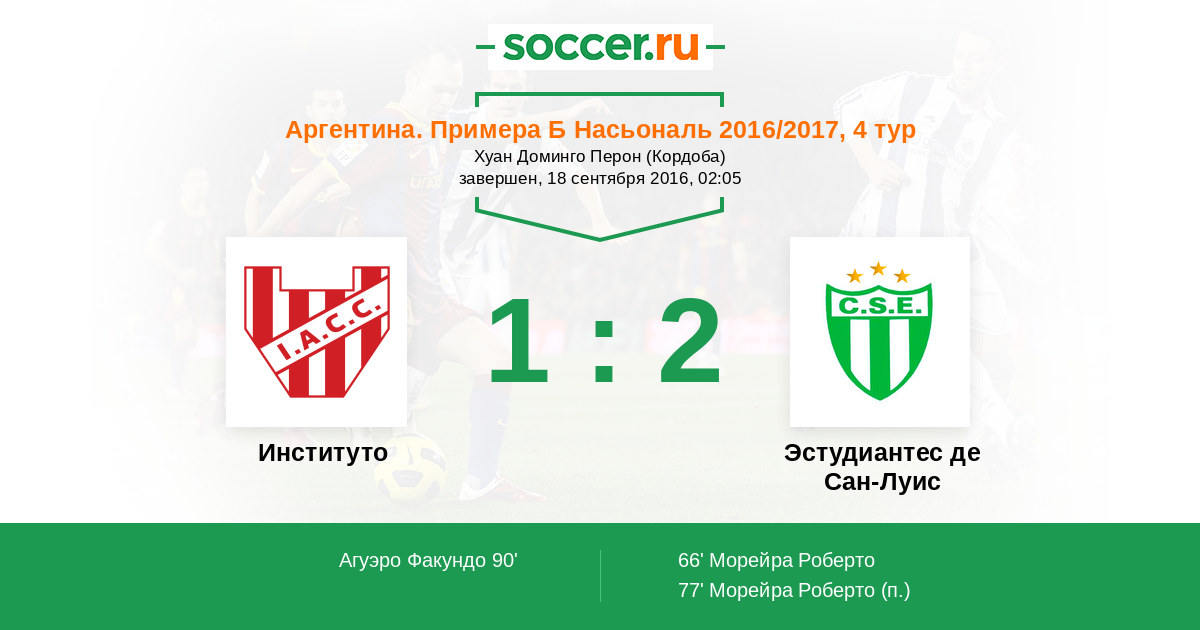 Протокол матча Институто против Эстудиантес де Сан-Луис