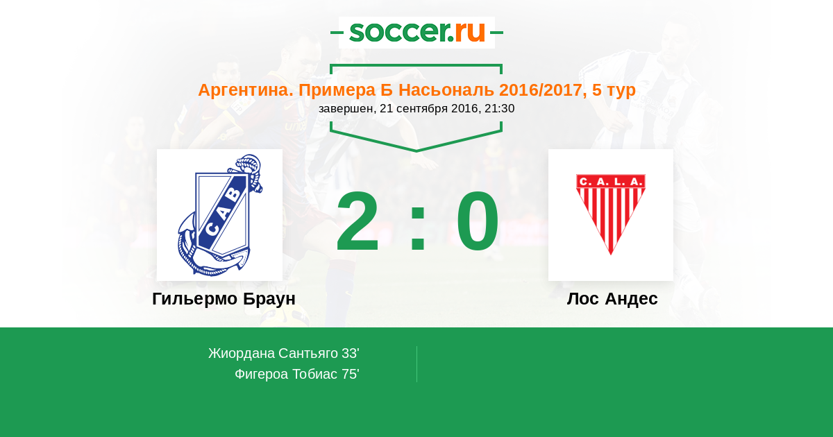 Протокол матча Гильермо Браун против Лос Андес