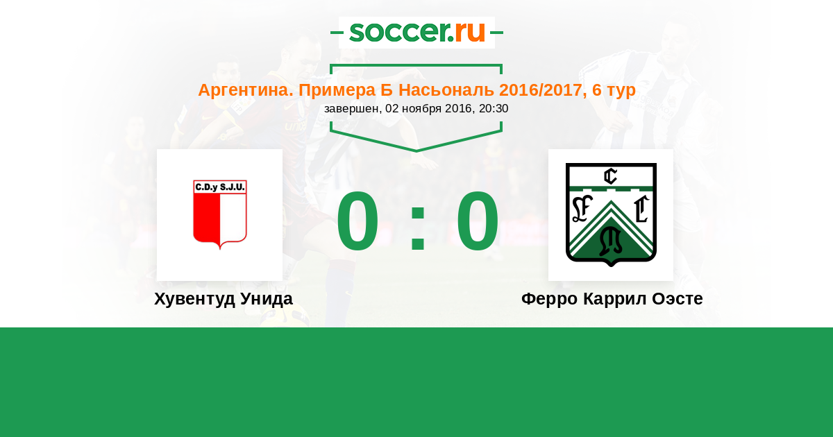 Протокол матча Хувентуд Унида против Ферро Каррил Оэсте