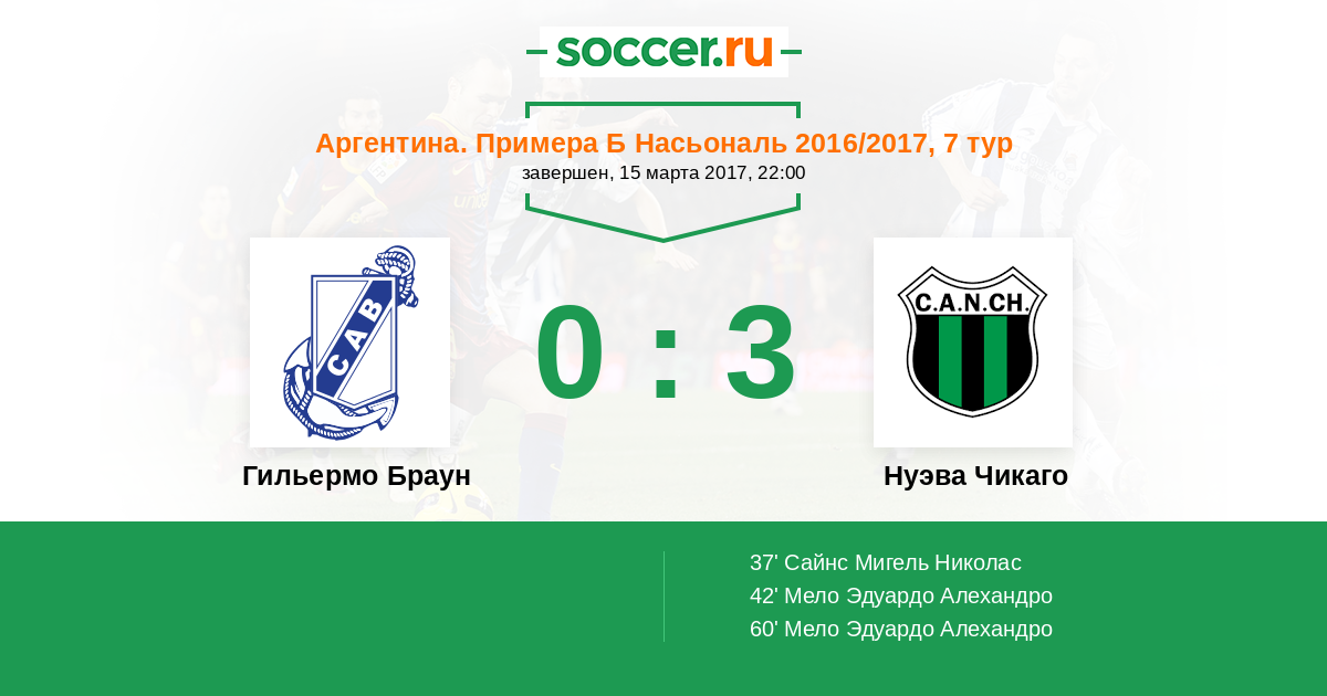 Протокол матча Гильермо Браун против Нуэва Чикаго