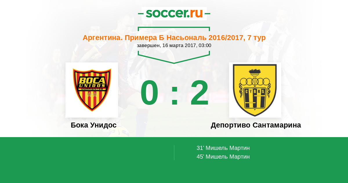 Протокол матча Бока Унидос против Депортиво Сантамарина