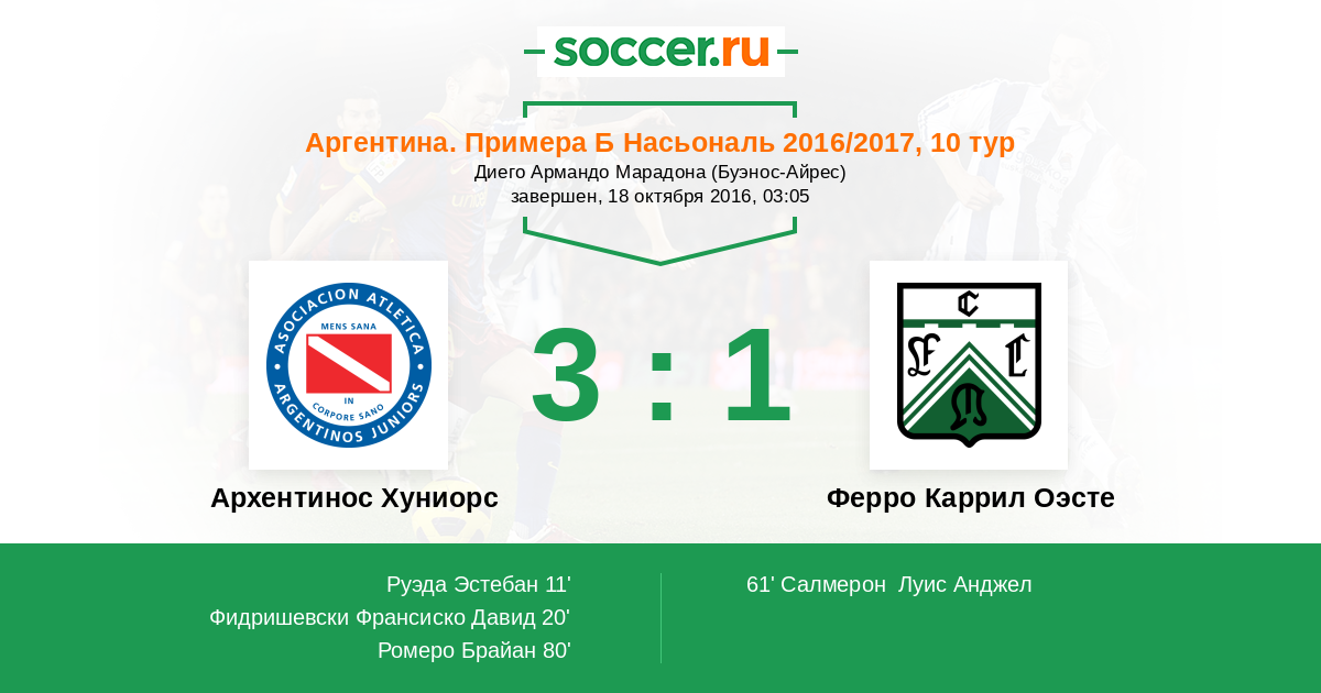 Протокол матча Архентинос Хуниорс против Ферро Каррил Оэсте