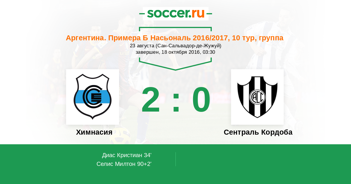Протокол матча Химнасия против Сентраль Кордоба