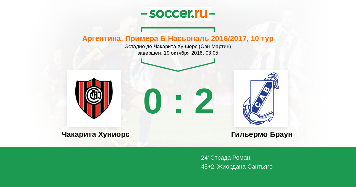 Протокол матча Чакарита Хуниорс против Гильермо Браун
