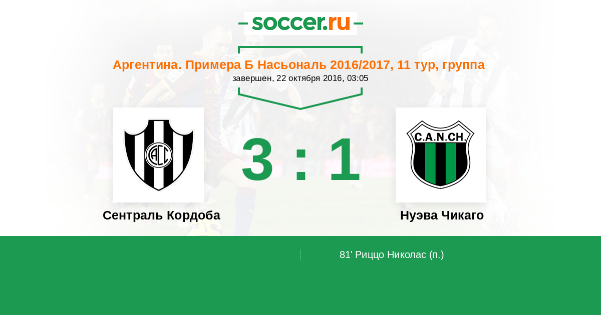 Протокол матча Сентраль Кордоба против Нуэва Чикаго