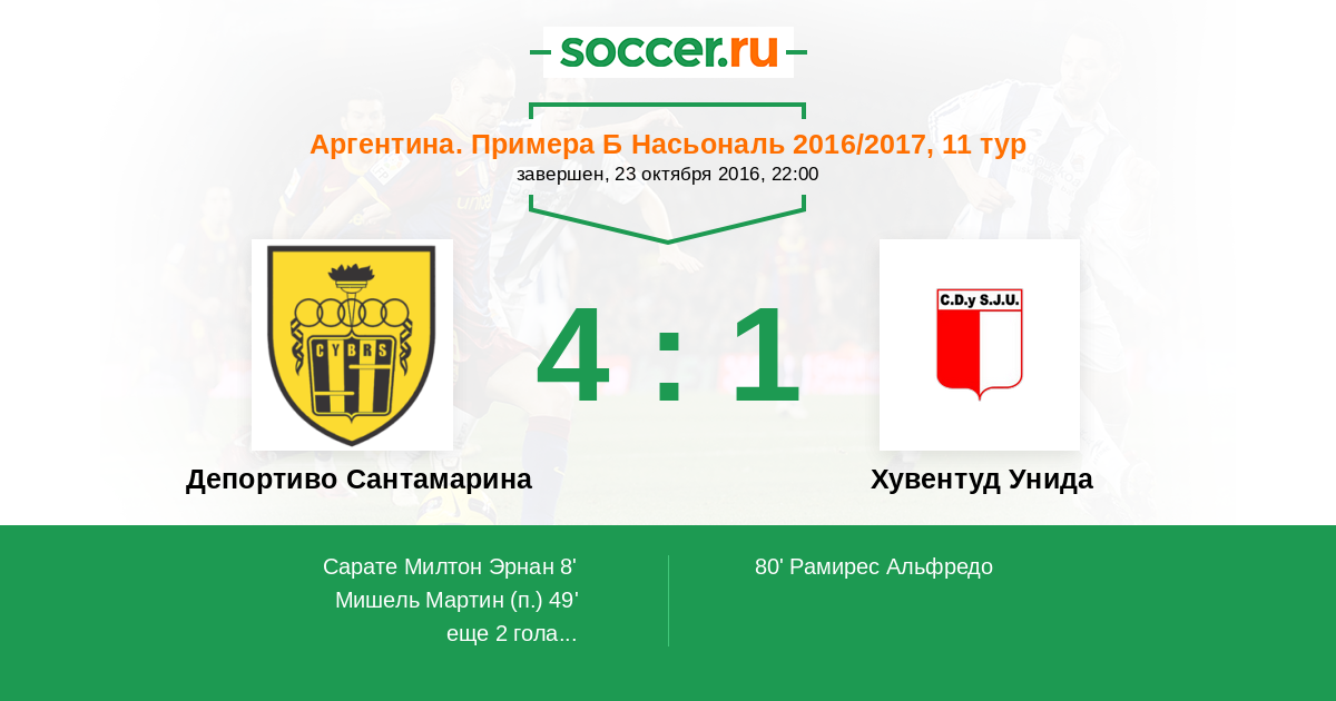 Протокол матча Депортиво Сантамарина против Хувентуд Унида