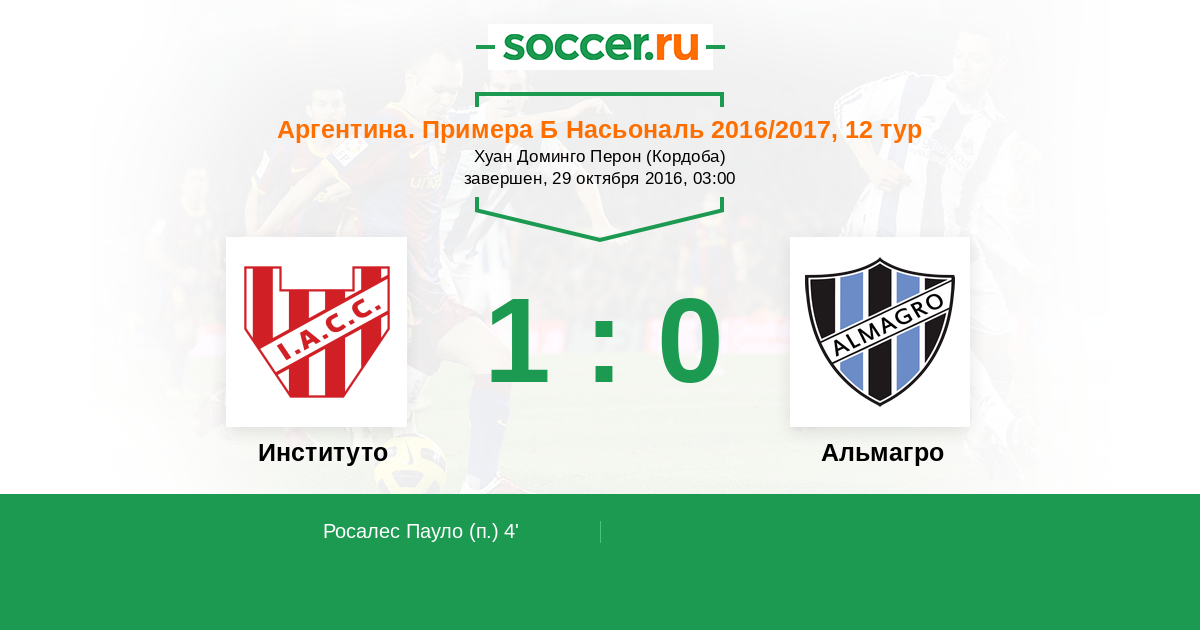Протокол матча Институто против Альмагро