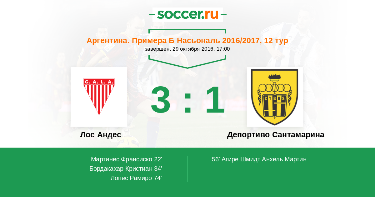 Протокол матча Лос Андес против Депортиво Сантамарина