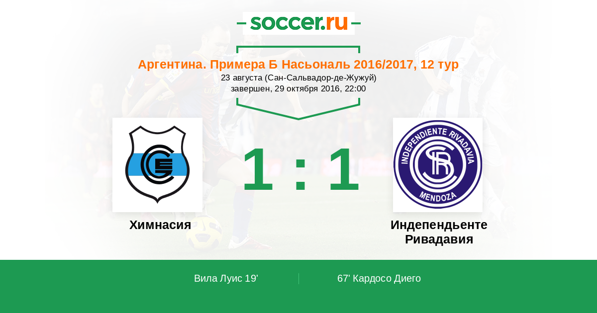 Протокол матча Химнасия против Индепендьенте Ривадавия