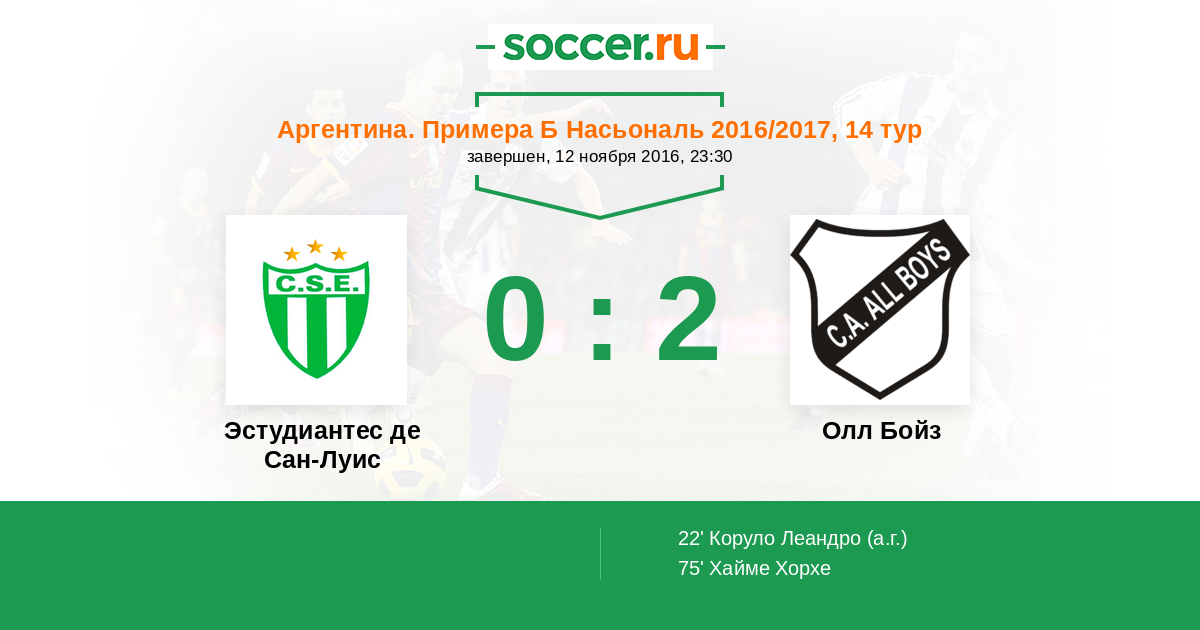 Протокол матча Эстудиантес де Сан-Луис против Олл Бойз