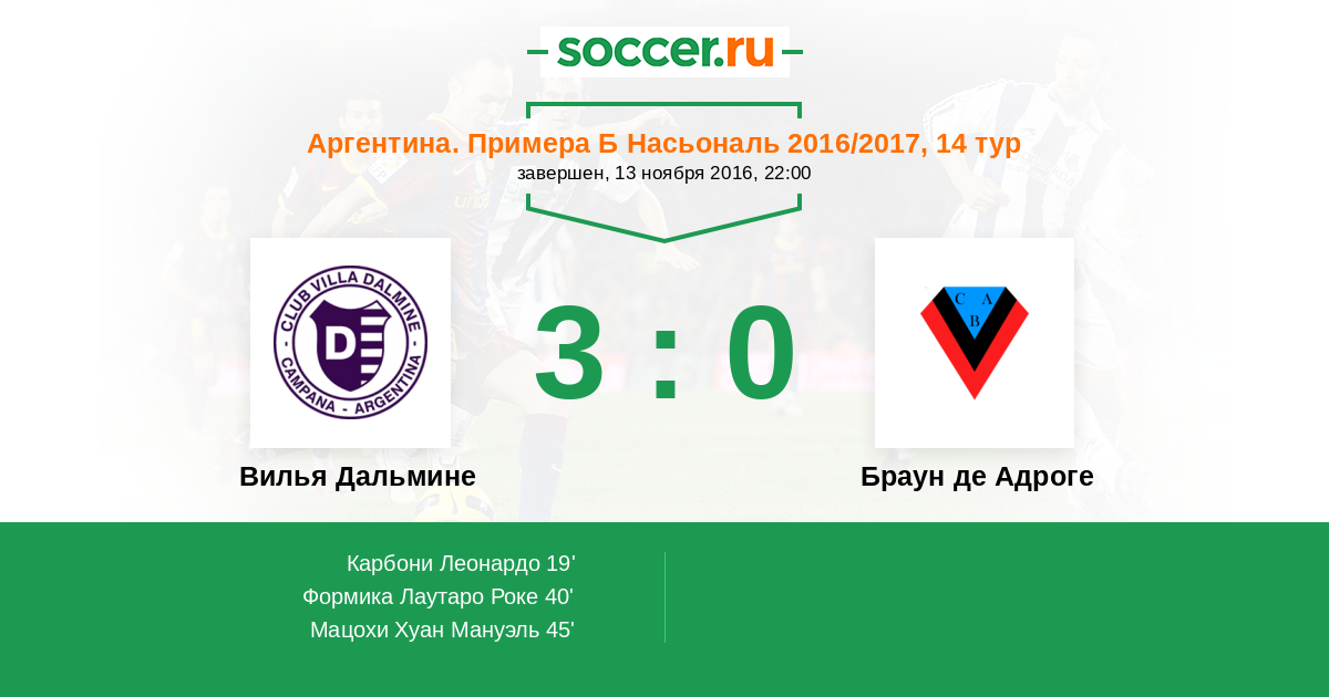 Протокол матча Вилья Дальмине против Браун де Адроге