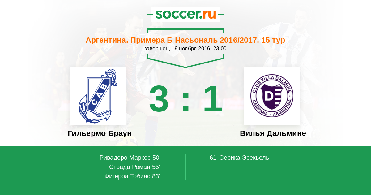 Протокол матча Гильермо Браун против Вилья Дальмине