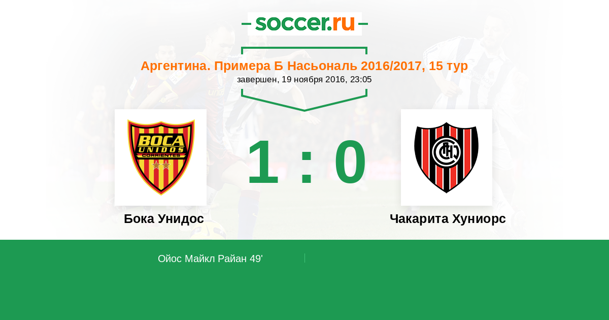 Протокол матча Бока Унидос против Чакарита Хуниорс