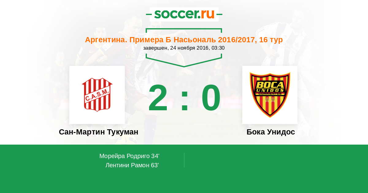 Протокол матча Сан-Мартин Тукуман против Бока Унидос