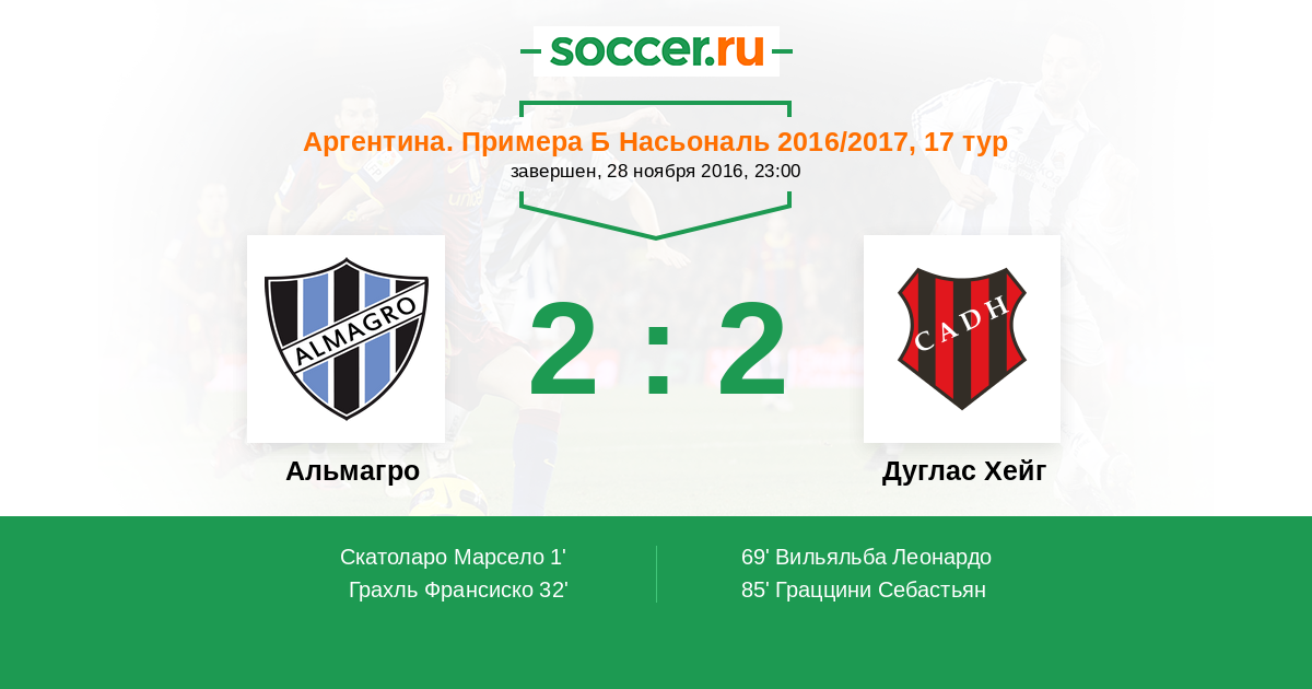 Протокол матча Альмагро против Дуглас Хейг