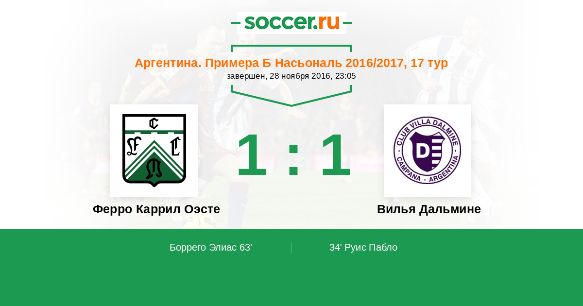 Протокол матча Ферро Каррил Оэсте против Вилья Дальмине