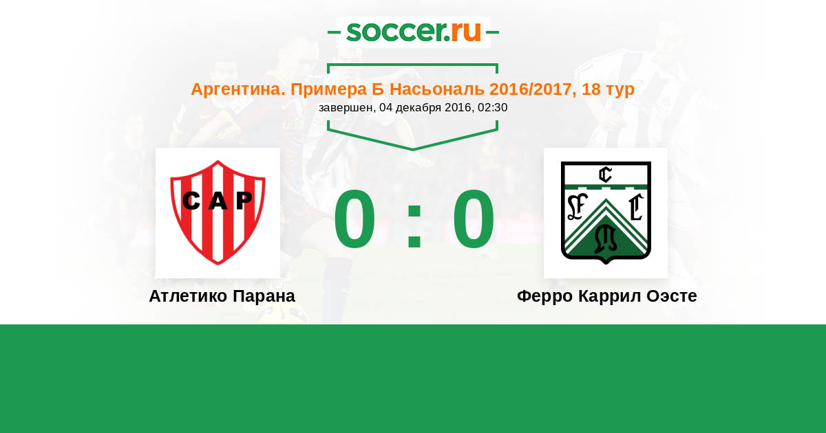 Протокол матча Атлетико Парана против Ферро Каррил Оэсте