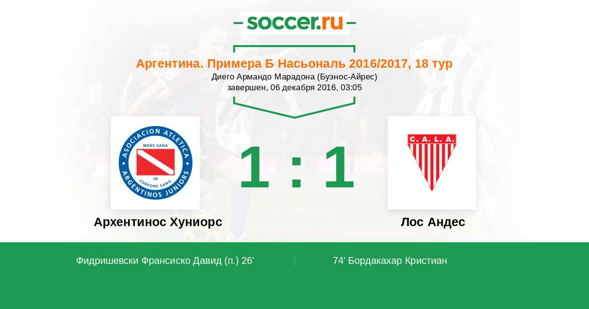Протокол матча Архентинос Хуниорс против Лос Андес