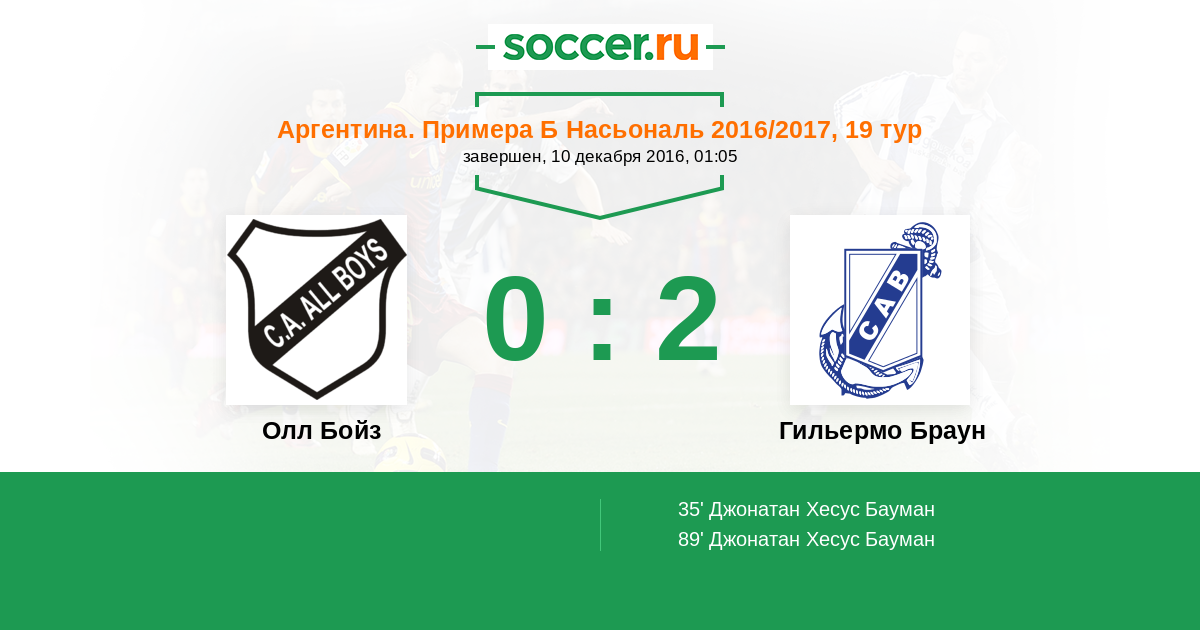 Протокол матча Олл Бойз против Гильермо Браун