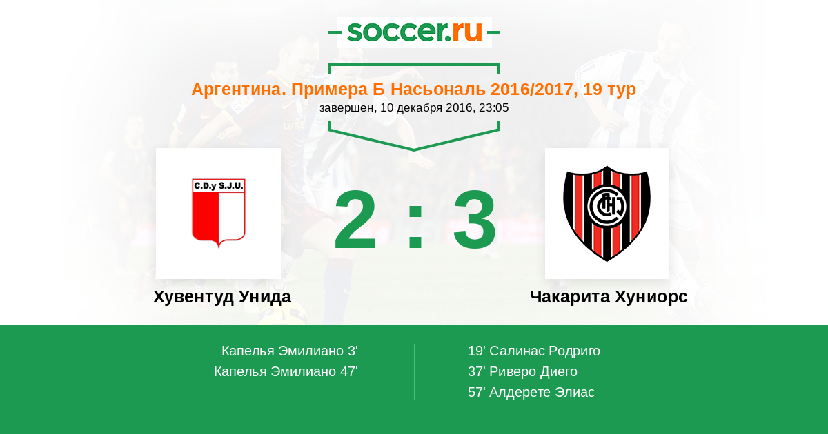 Протокол матча Хувентуд Унида против Чакарита Хуниорс