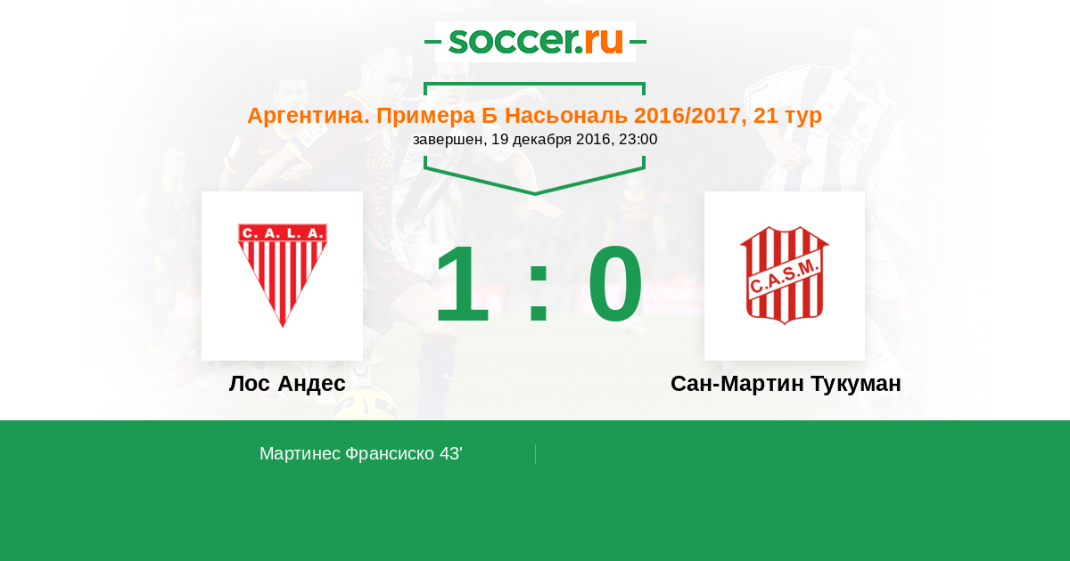 Протокол матча Лос Андес против Сан-Мартин Тукуман
