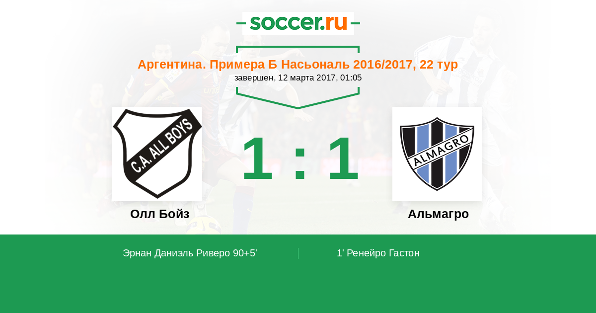 Протокол матча Олл Бойз против Альмагро