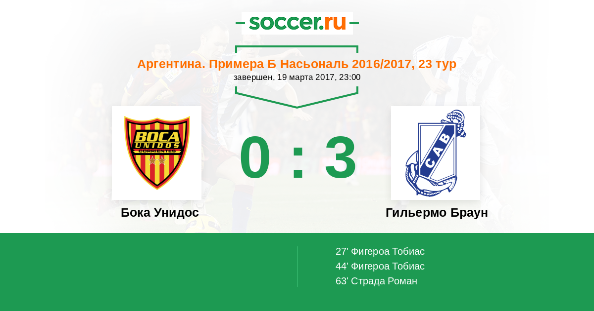 Протокол матча Бока Унидос против Гильермо Браун