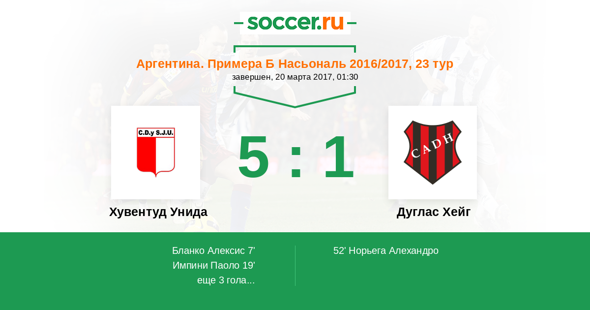 Протокол матча Хувентуд Унида против Дуглас Хейг