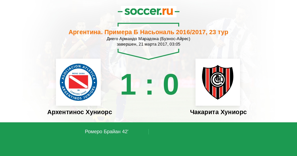 Протокол матча Архентинос Хуниорс против Чакарита Хуниорс