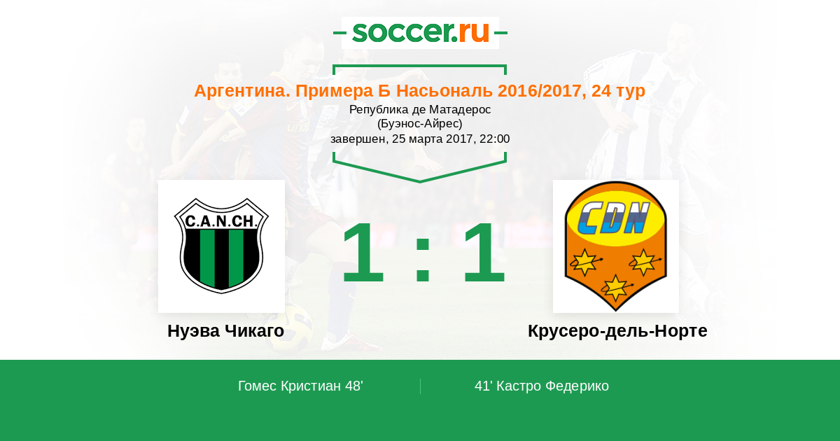 Протокол матча Нуэва Чикаго против Крусеро-дель-Норте