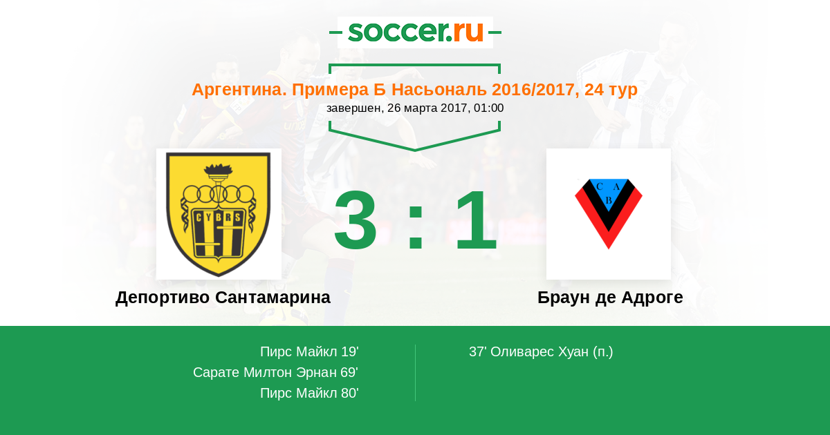 Протокол матча Депортиво Сантамарина против Браун де Адроге