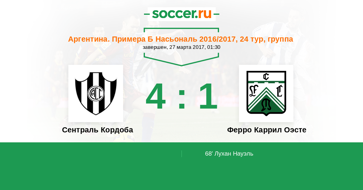 Протокол матча Сентраль Кордоба против Ферро Каррил Оэсте