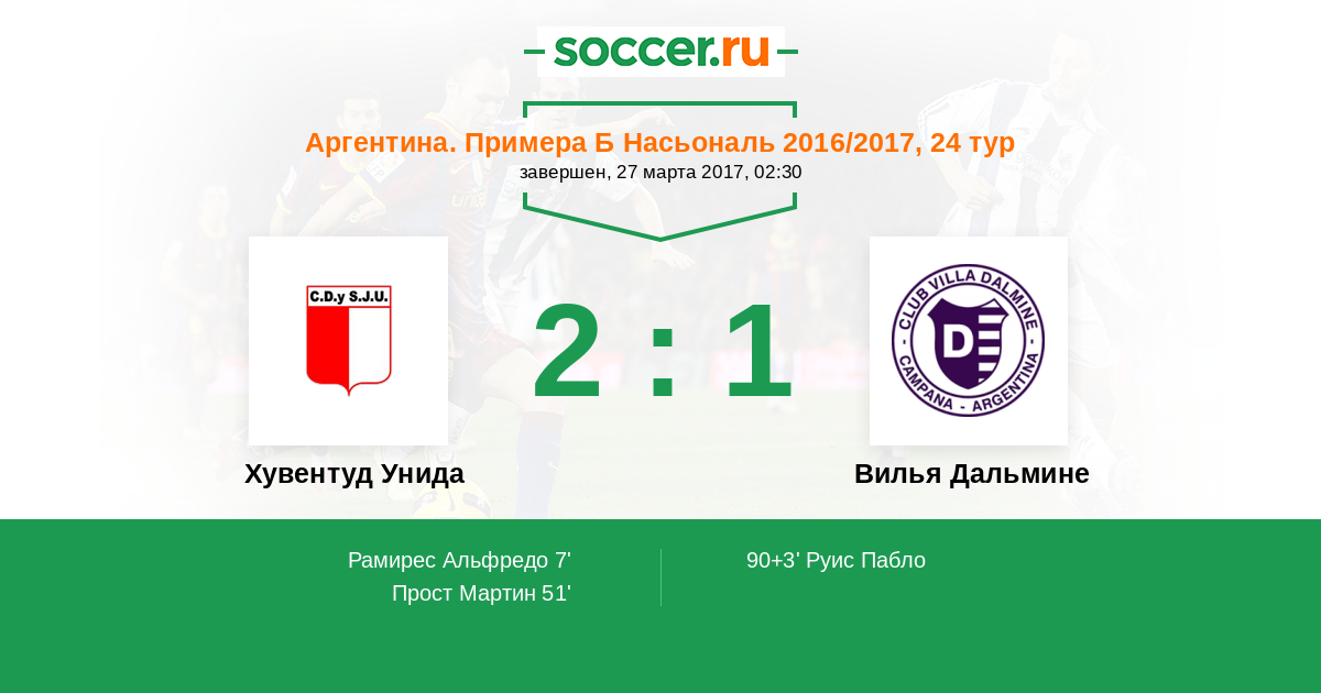 Протокол матча Хувентуд Унида против Вилья Дальмине
