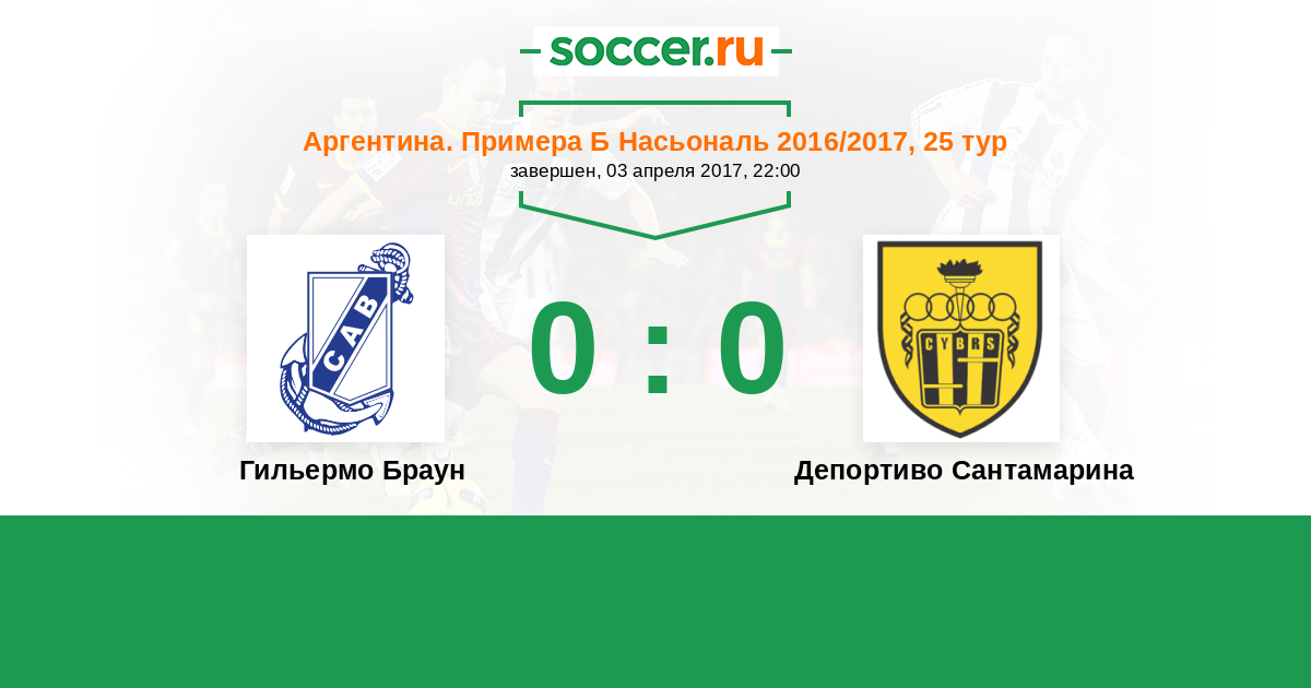 Протокол матча Гильермо Браун против Депортиво Сантамарина