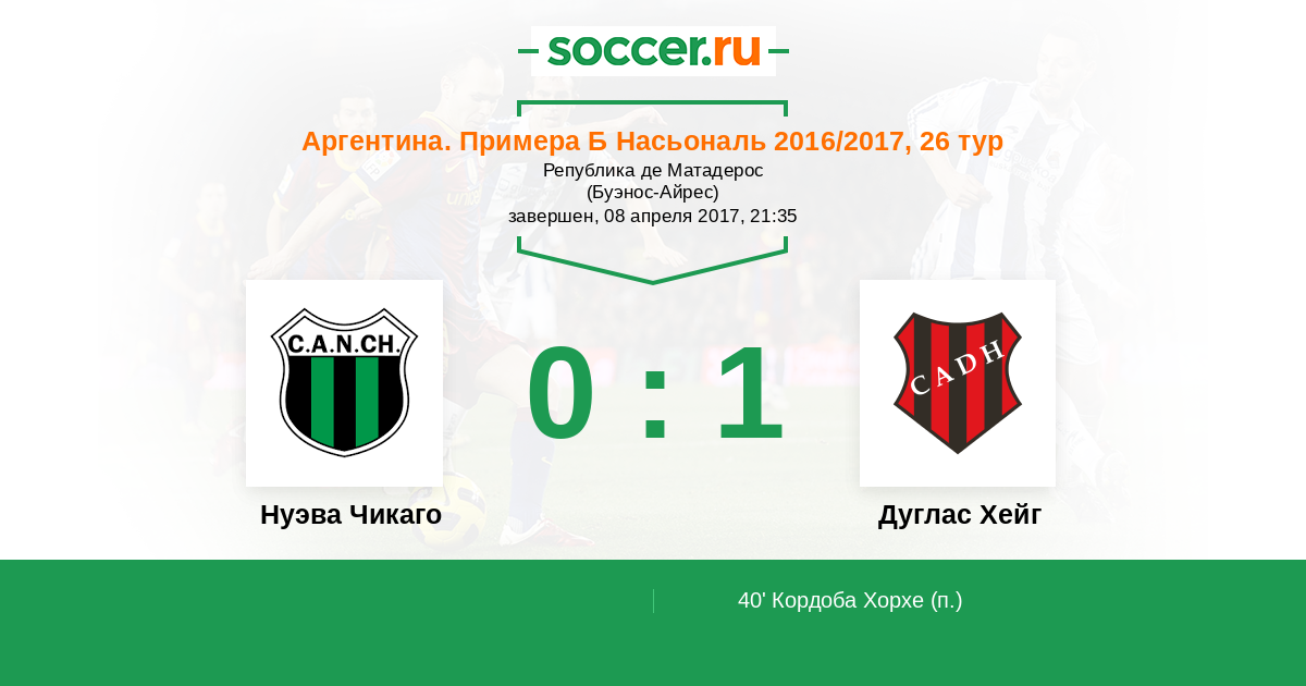 Протокол матча Нуэва Чикаго против Дуглас Хейг