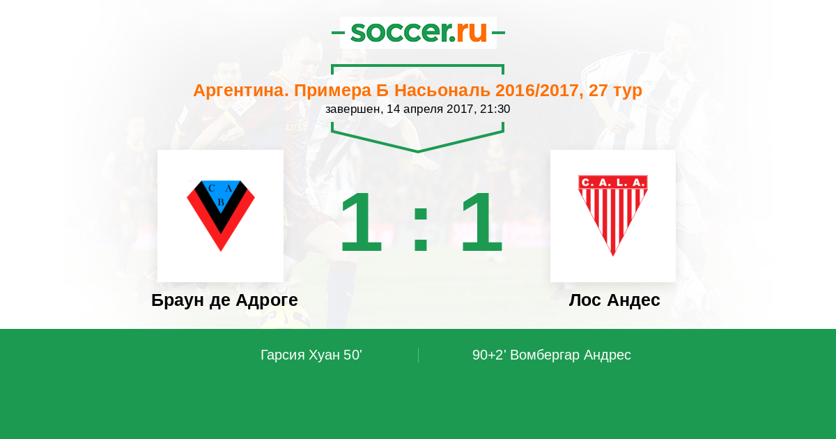 Протокол матча Браун де Адроге против Лос Андес