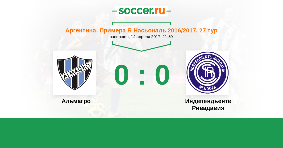 Протокол матча Альмагро против Индепендьенте Ривадавия
