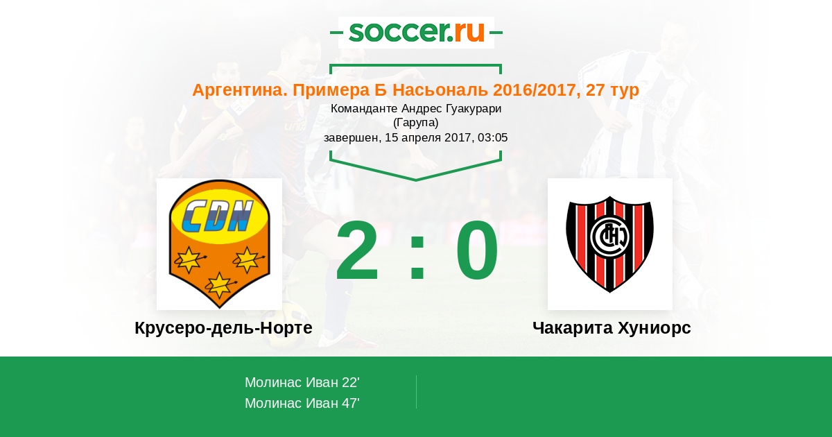Протокол матча Крусеро-дель-Норте против Чакарита Хуниорс