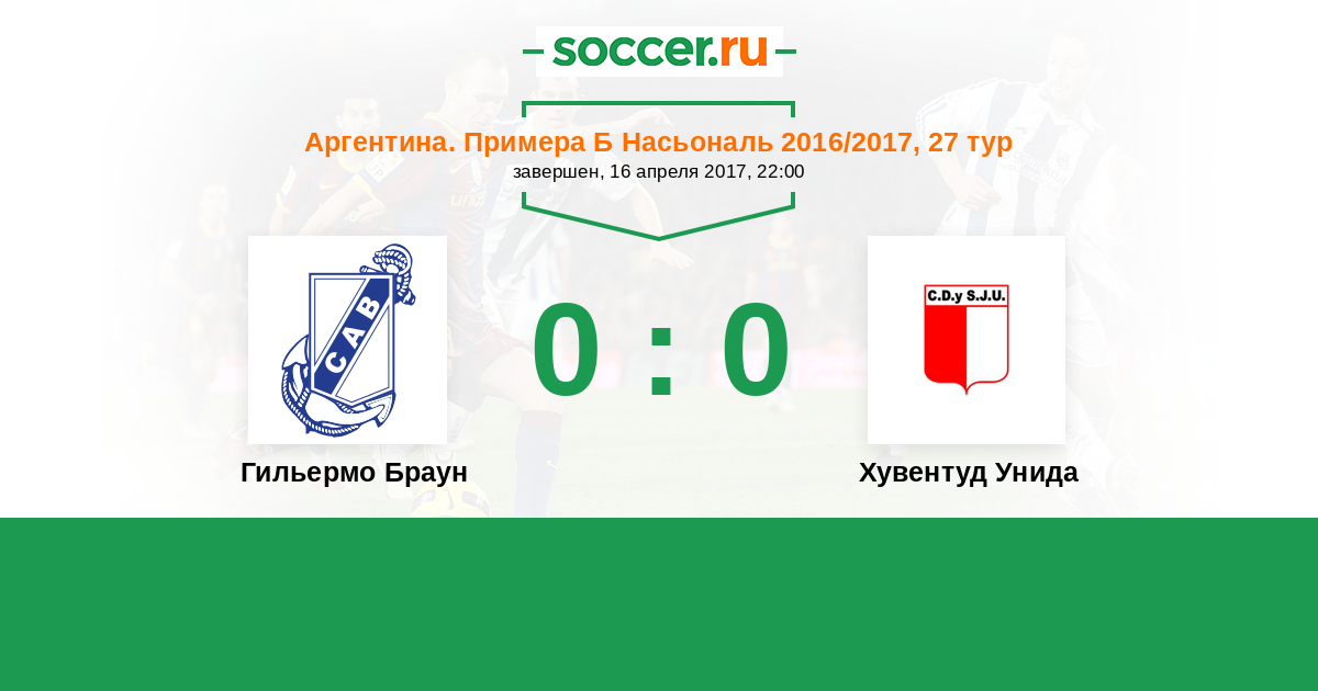 Протокол матча Гильермо Браун против Хувентуд Унида