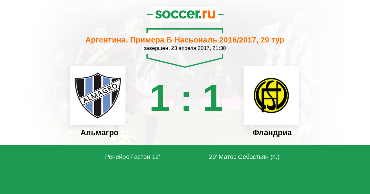 Протокол матча Альмагро против Фландриа