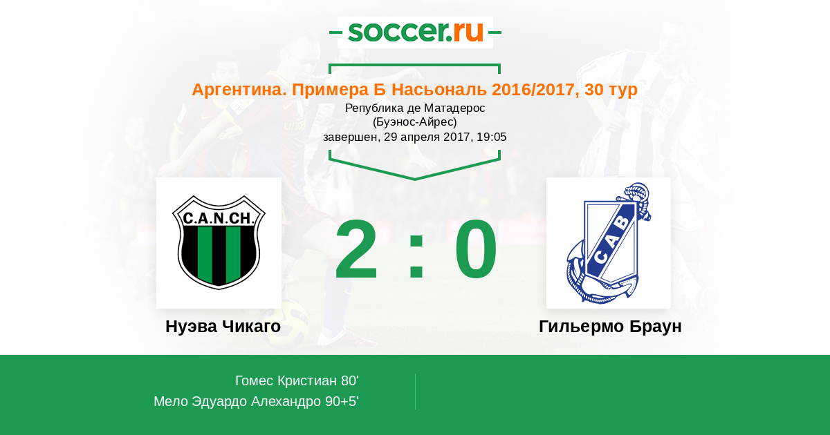 Протокол матча Нуэва Чикаго против Гильермо Браун