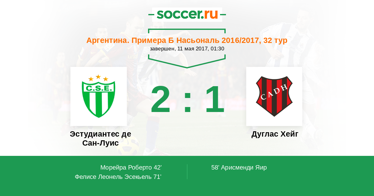 Протокол матча Эстудиантес де Сан-Луис против Дуглас Хейг