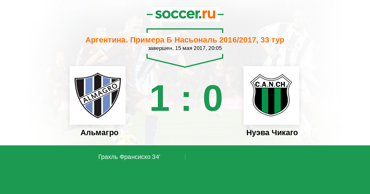 Протокол матча Альмагро против Нуэва Чикаго